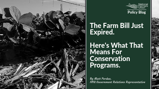 The Farm Bill Conference Committee remains squarely focused on getting a bill passed before the end of the calendar year. Bringing together the significant differences between the House and Senate bills was an already difficult task that received an extra layer of pressure Sunday night when the 2014 Farm Bill expired. National Farmers Union is optimistic a new Farm Bill will be passed shortly after the election, but the lapse will have notable, short-term impacts on several programs, including three key conservation programs.